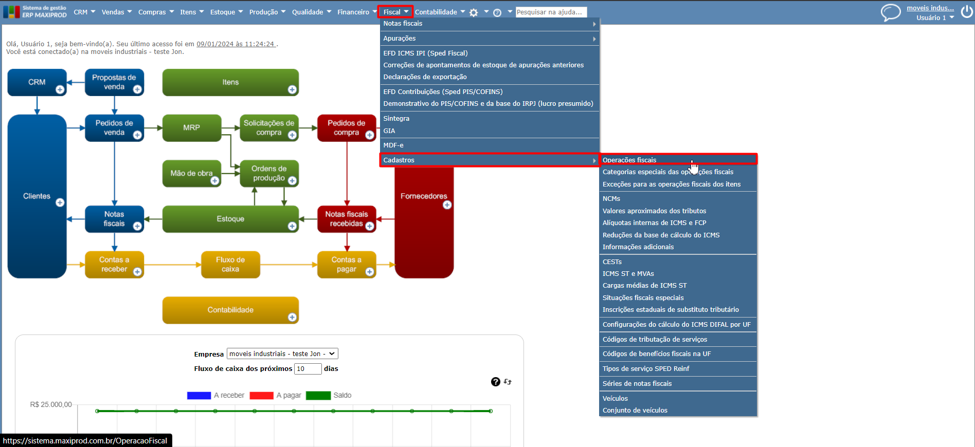 a) Acesse o menu “Fiscal > Cadastros > Operações fiscais”.