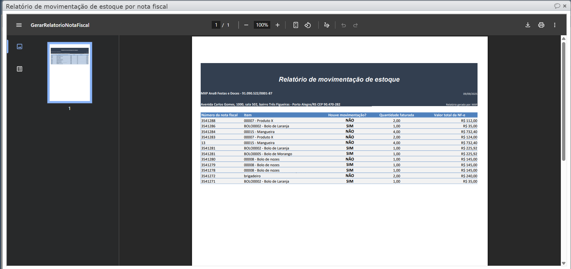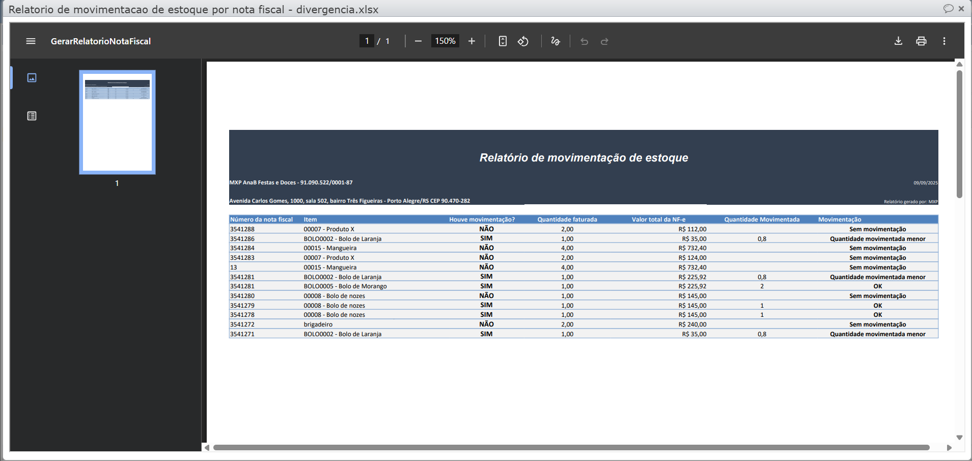 3) Assim, além de informar se a nota fiscal teve movimentação de estoque, o relatório também mostra se ocorreu a movimentação de uma quantidade menor.