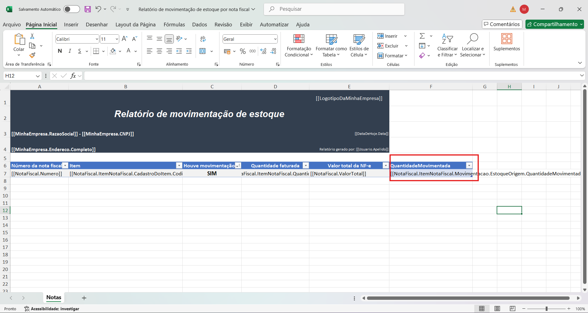1) Para informar se houve movimentação, o relatório disponível tem uma coluna oculta, a coluna “F”, com a tag que exibe a quantidade movimentada. Para melhorar a análise pode-se tornar visível essa coluna “F”.