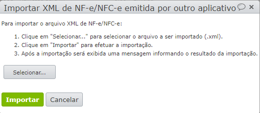 3) Selecione o arquivo XML presente no seu computador através do botão cinza “Selecionar” e clique no botão verde “Importar”.