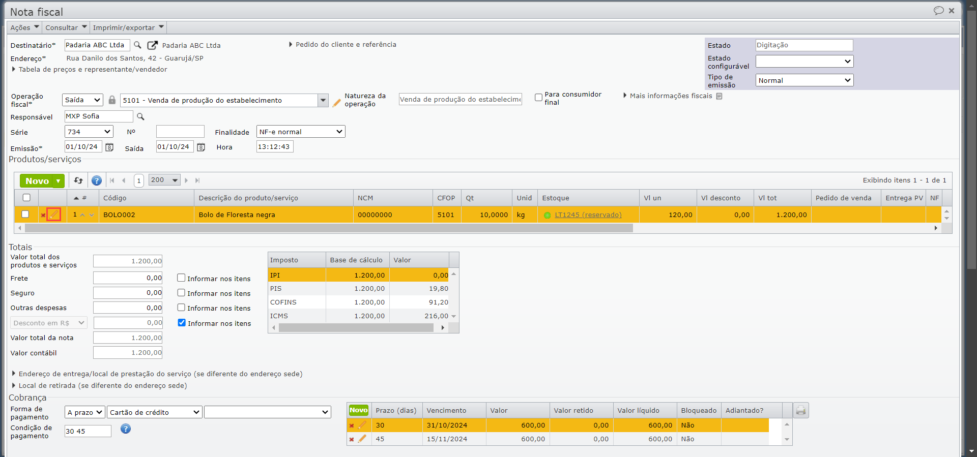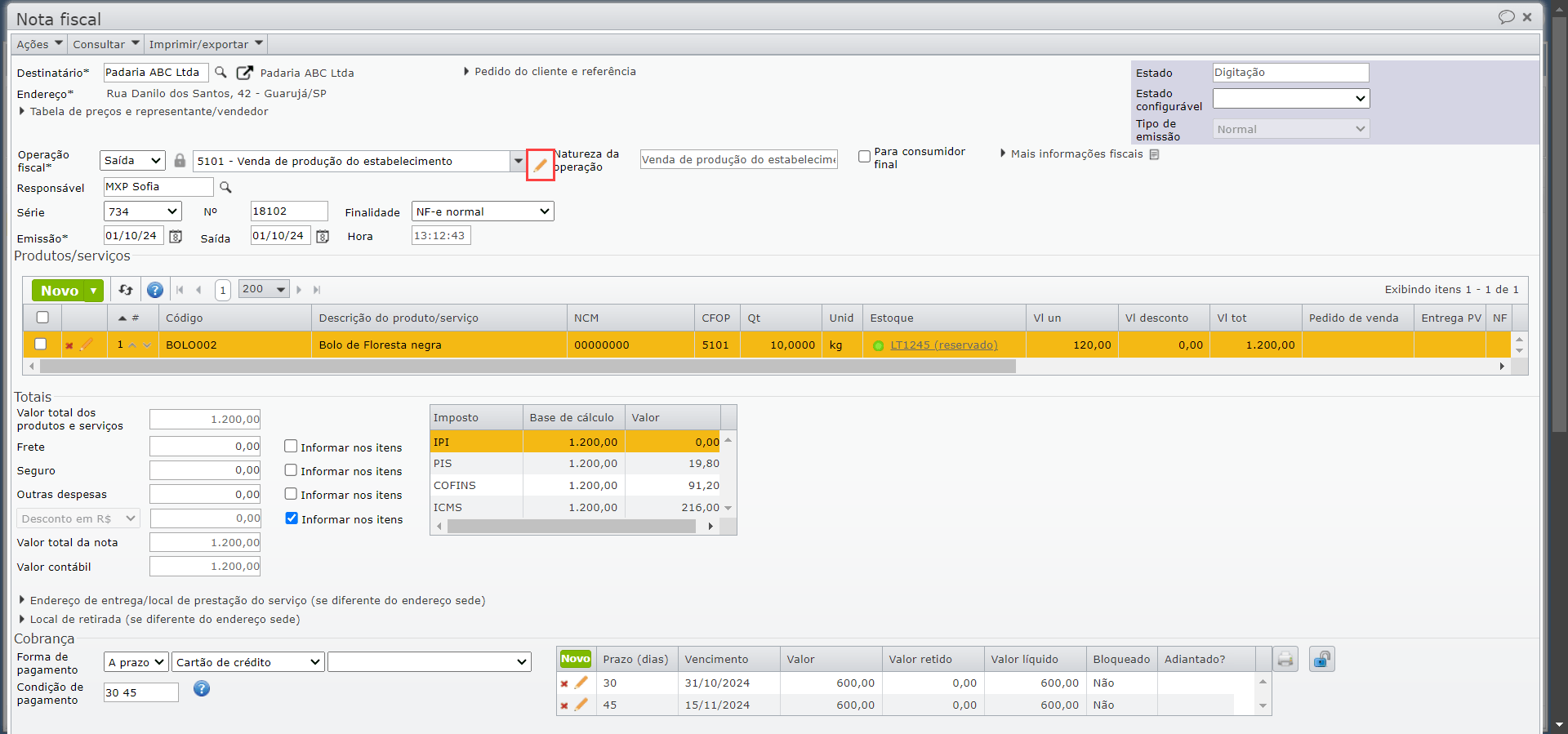 1) Edite o item da nota fiscal, clicando no ícone do lápis.
