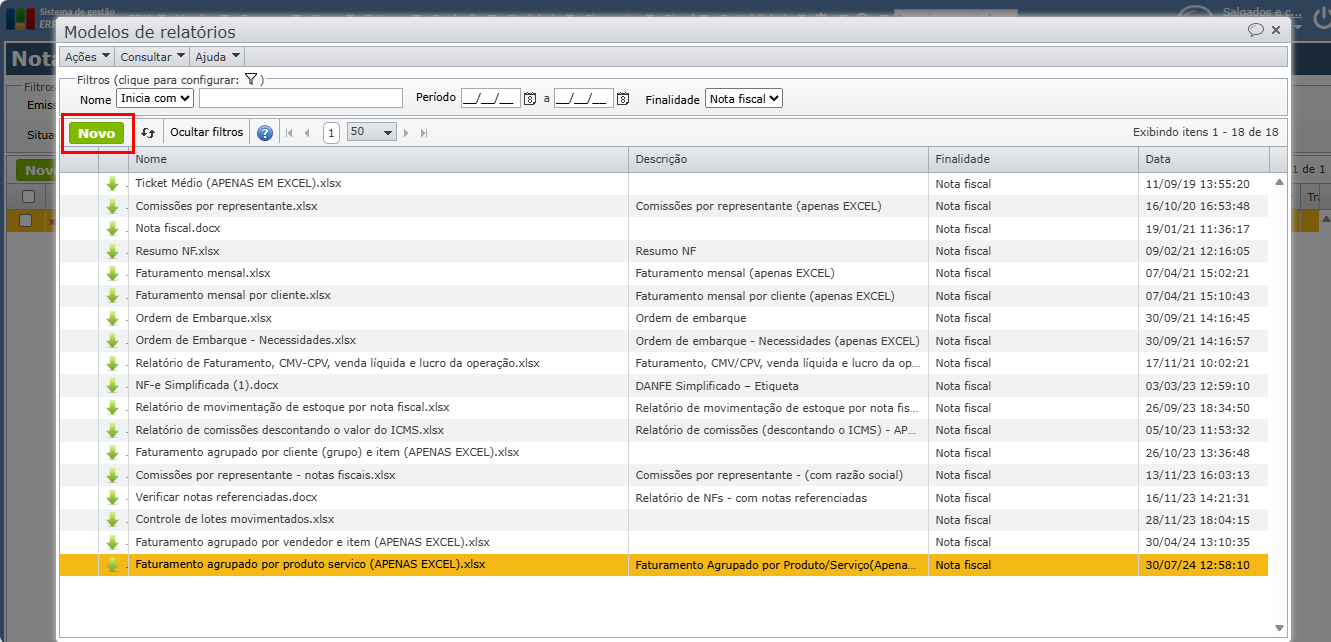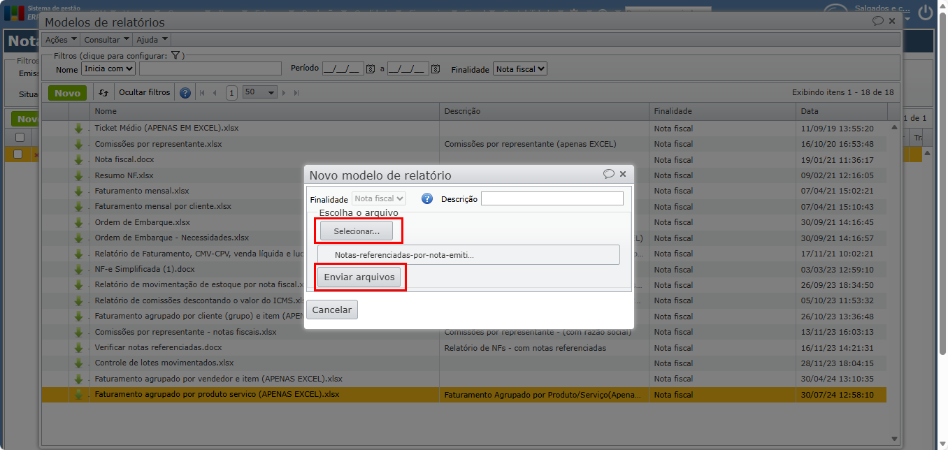 1) Para identificar qual NF está referenciando outra, utilize um dos relatórios abaixo. Os relatórios devem ser selecionados conforme o tipo de nota. Clique sobre os links abaixo para fazer o download dos modelos de relatórios desejados:
