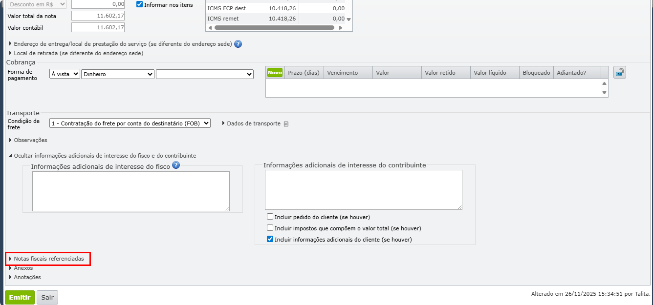 3) Abra a seção “Notas fiscais referenciadas”.
