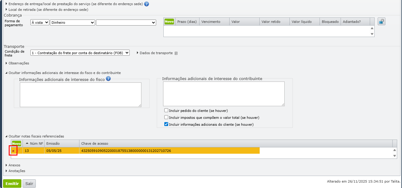 4) Clique no ícone “x” para remover a referência da nota desejada.