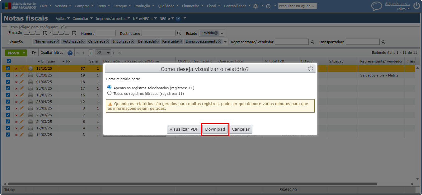 4) Clique no botão cinza “Download” para gerar o relatório.