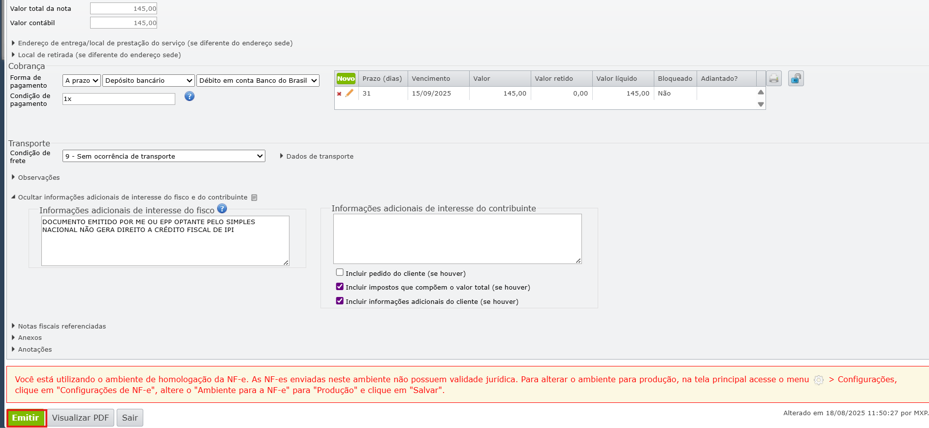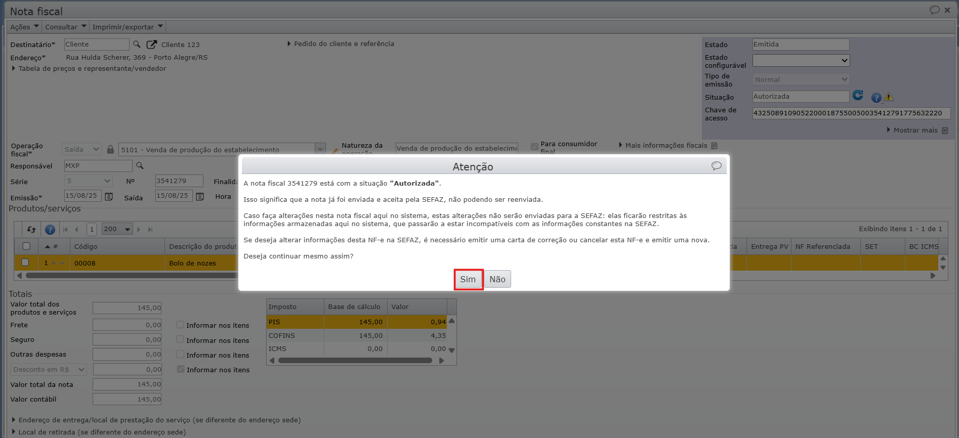 9) Após o vínculo, confirme a emissão da nota fiscal para regularizar a situação.