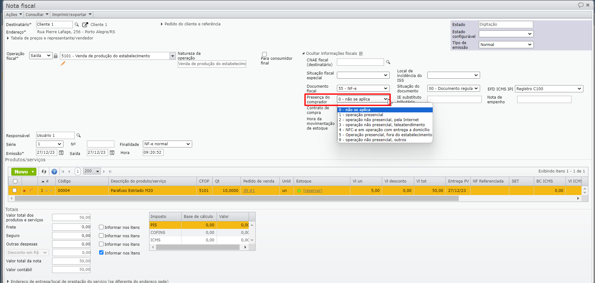 As exigências e práticas podem variar conforme as leis fiscais locais e o tipo de transação. Portanto, ao lidar com questões relacionadas à “Presença do comprador” na NF, é recomendável consultar as regulamentações tributárias do local onde a transação está ocorrendo.