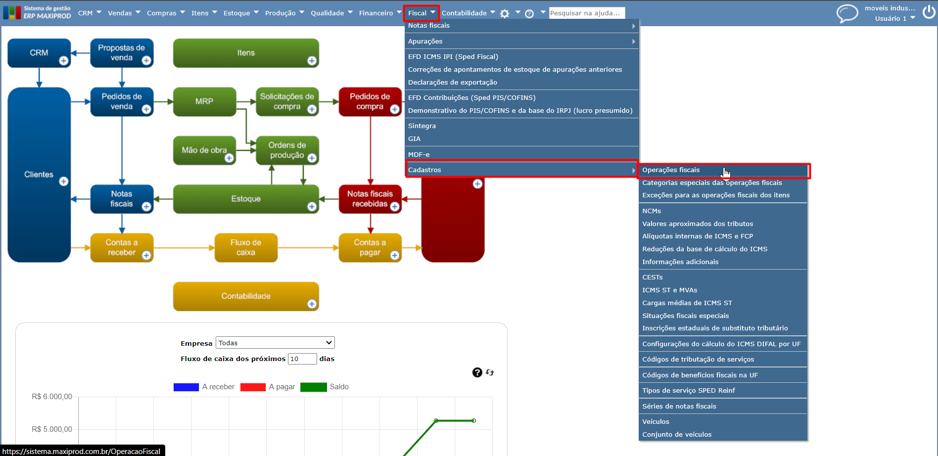 1) Acesse o menu “Fiscal” > “Cadastros” > “Operações fiscais”.