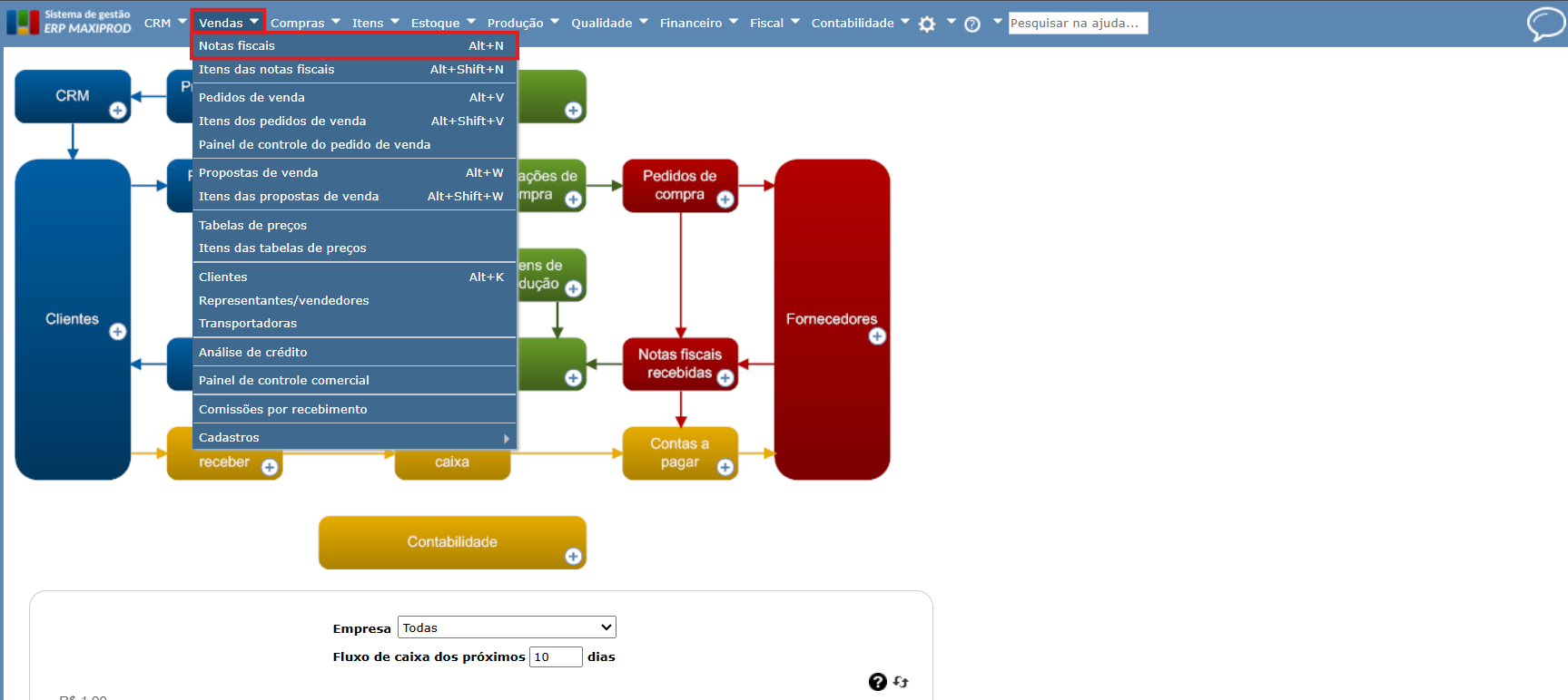1) Acesse a tela de nota fiscais em “Vendas > Notas fiscais”.