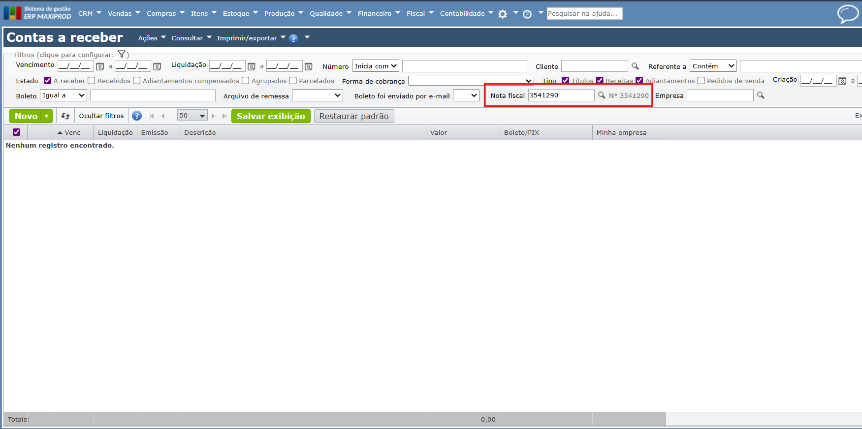 5) O título será removido de cobrança e não constará mais na tela de contas a receber.