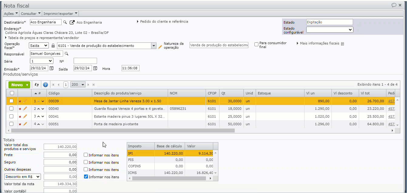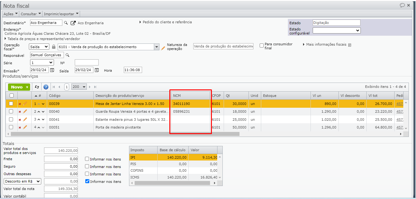 4) Após fazer o preenchimento do NCM em todos os itens da nota fiscal, siga com a emissão ou recebimento da nota fiscal.
