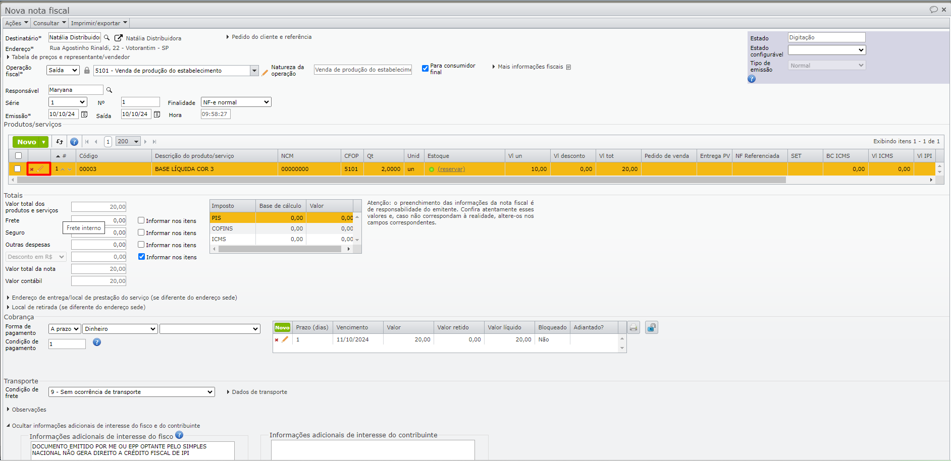 6) Finalmente, emita ou receba novamente a NF.