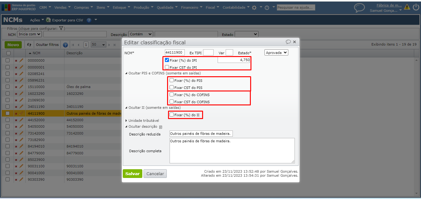 6) Verifique na respectiva seção do cadastro da NCM se o imposto tem CST e/ou alíquota fixada. Para saber mais sobre NCMs, clique aqui.
