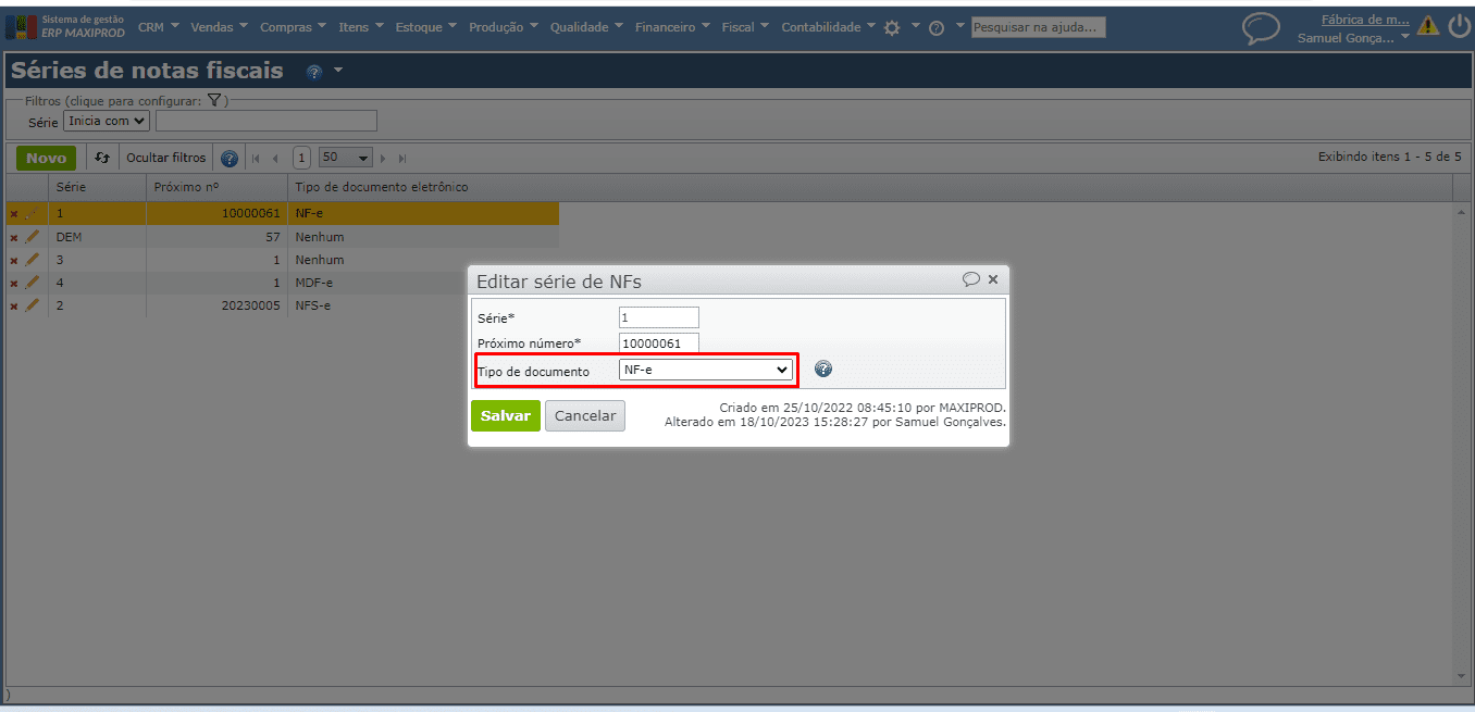 a) Se o usuário deseja emitir NFC-e ou NFS-e, precisa alterar o campo “Documento fiscal”.