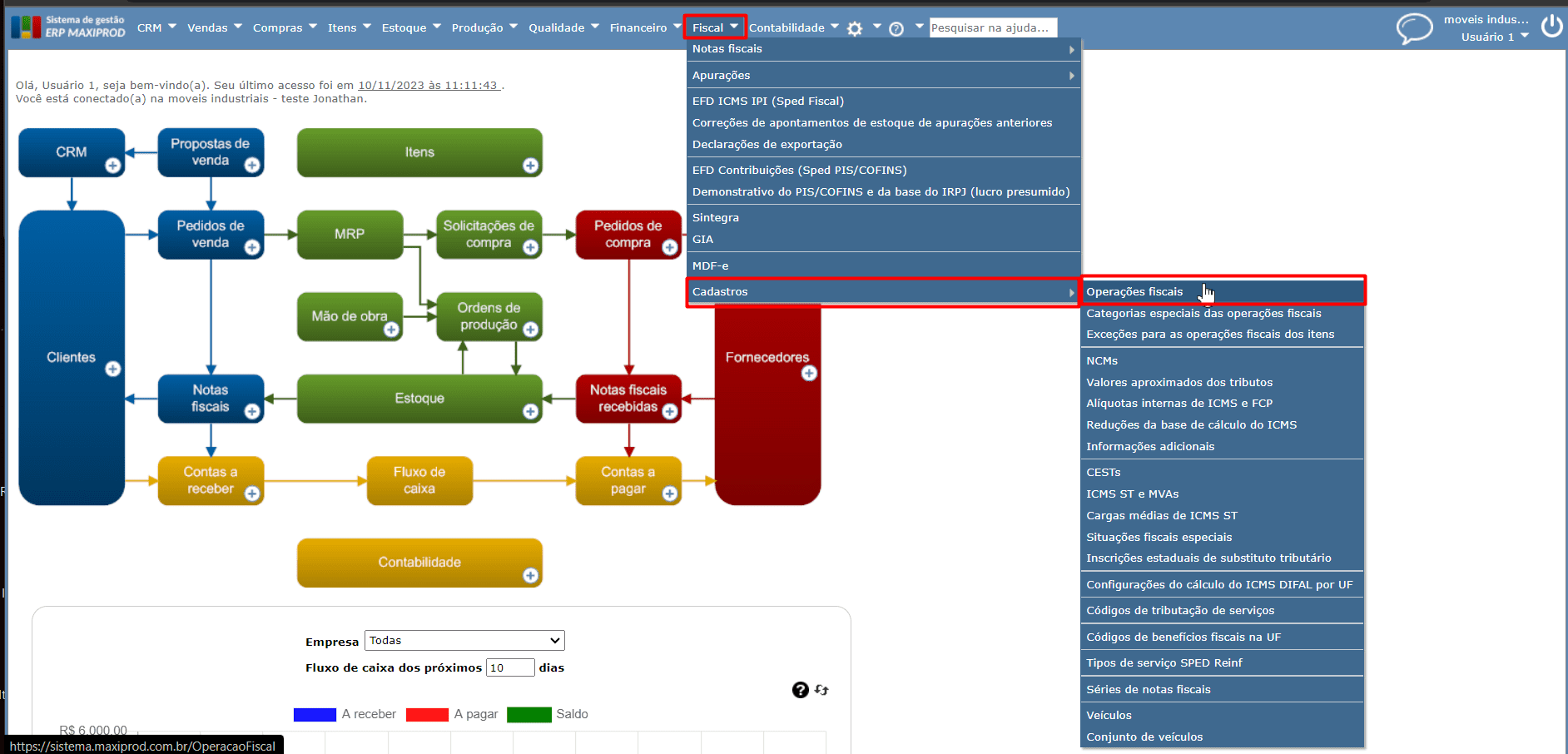 1) Acesse o menu “Fiscal > Cadastros > Operações fiscais”.