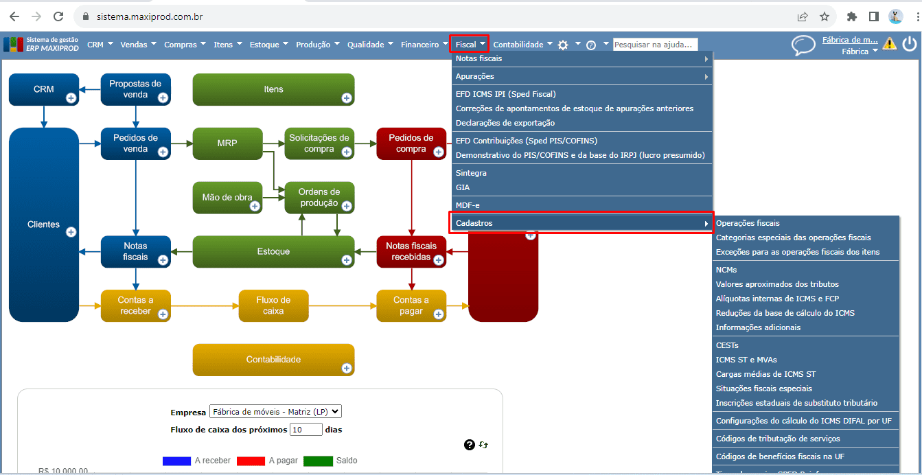 - dentre outros, como, por exemplo os cadastros do menu “Fiscal”, (“Fiscal > Cadastros”).