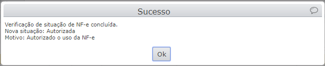 Se a nota já foi processada pela SEFAZ e autorizada, é retornado um aviso de sucesso: