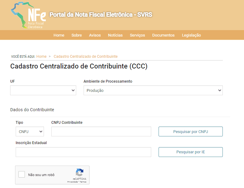 1 – Acesse o site da Sefaz do Rio Grande do Sul, no endereço https://dfe-portal.svrs.rs.gov.br/NFE/CCC