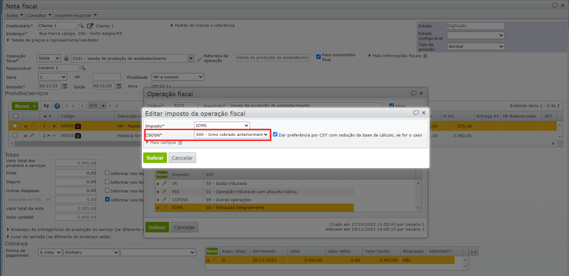 e) A seguir, salve a operação fiscal através do botão verde “Salvar“.