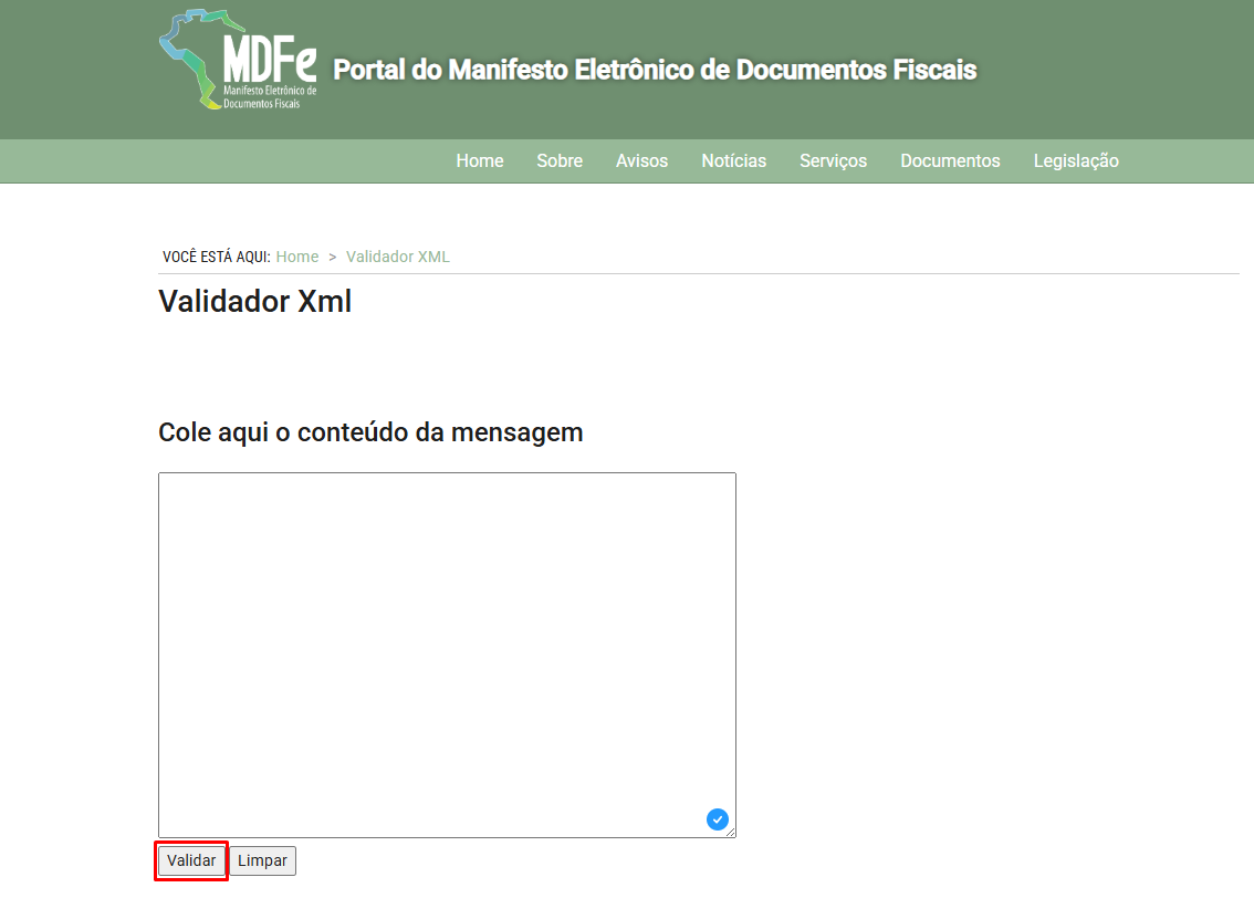 4) Acesse o Validador de XML de MDF-e da SEFAZ, clicando aqui.
