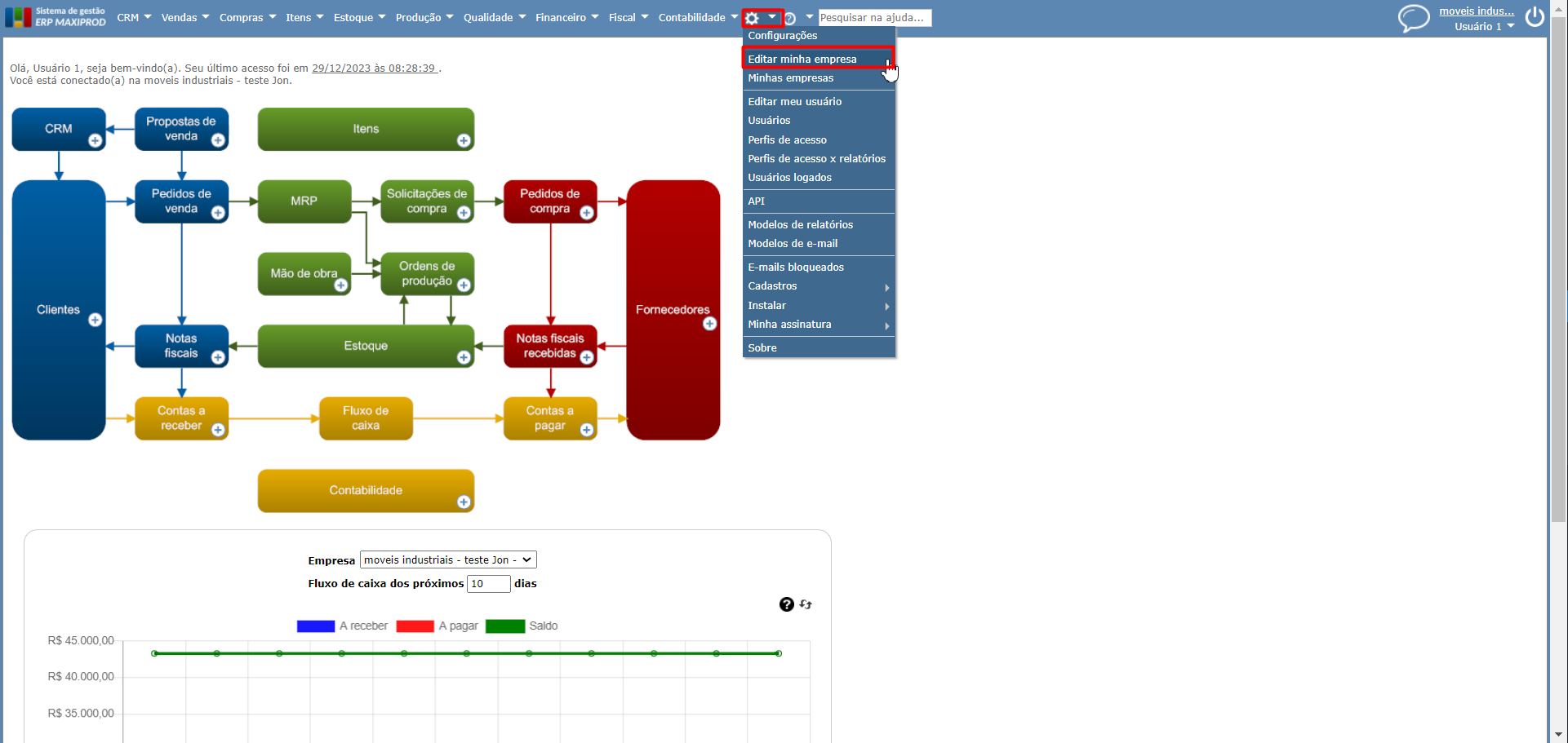 1) Acesse o menu “Roda dentada” > “Editar minha empresa”.