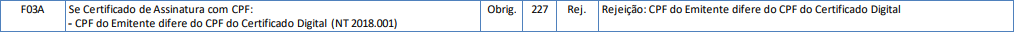 Quando uma NF-e é emitida com um CPF do emitente diferente do CPF do Certificado Digital, e retornada a rejeição “Rejeição 227: CPF do Emitente difere do CPF do Certificado Digital”.