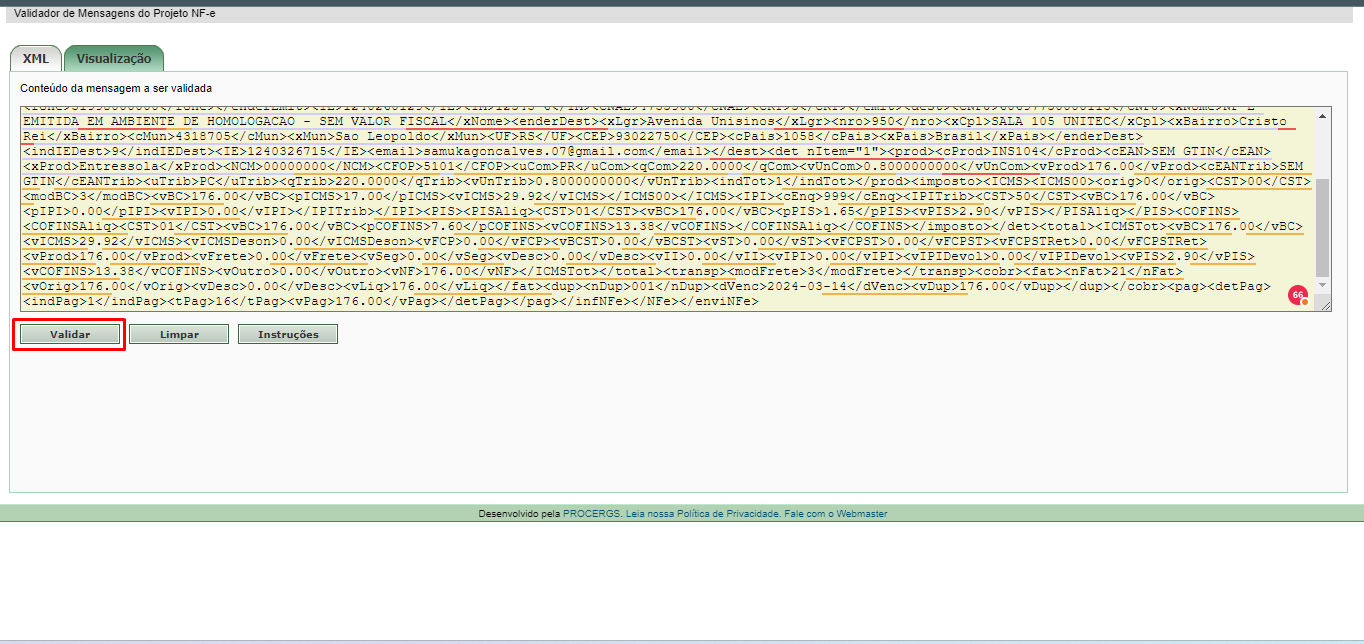 7) Depois do texto ser colado no campo livre, clique em “Validar”.