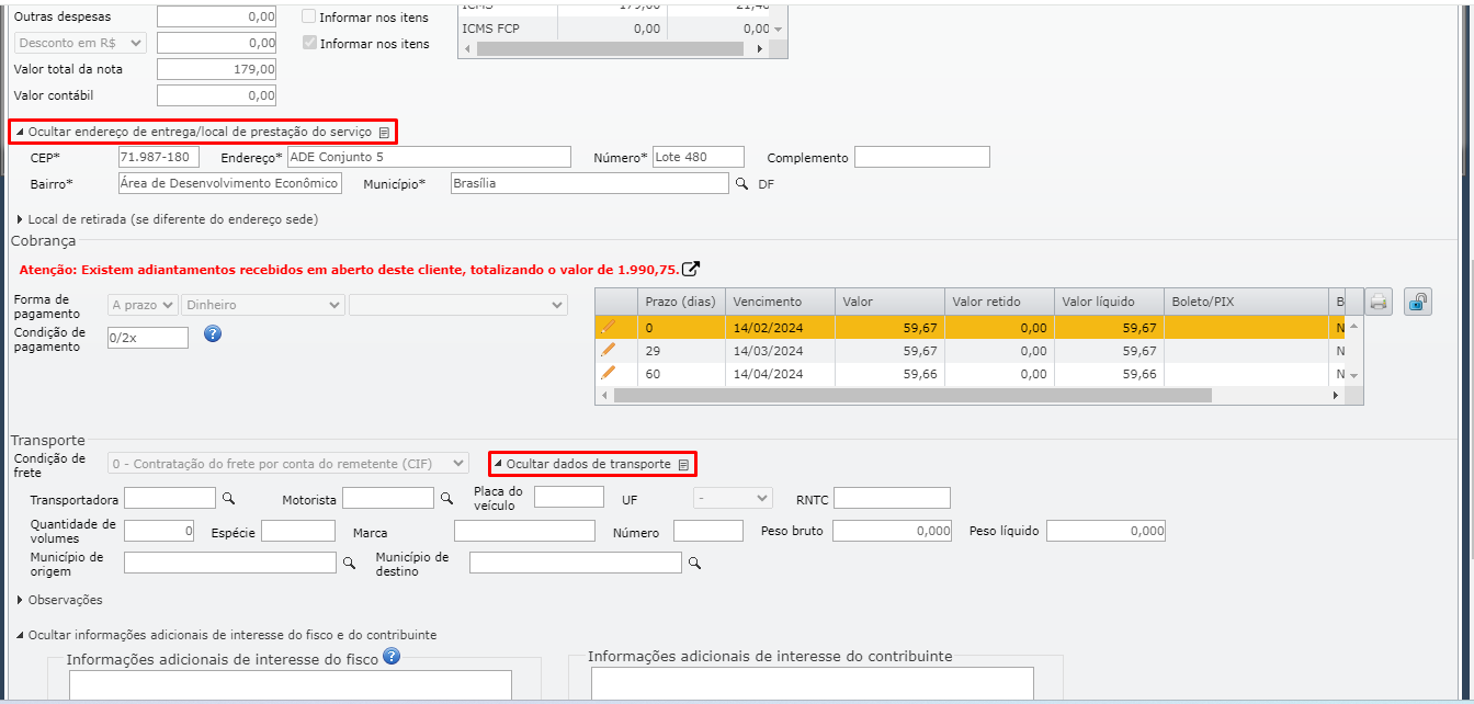 10) Verifique se há algum campo preenchido com caracteres especiais ou símbolos: barra, dois pontos, ponto e vírgula, parênteses, arroba, hashtag, etc. Se houver, remova o caractere especial do campo, salve a alteração, emita e envie novamente a NF.