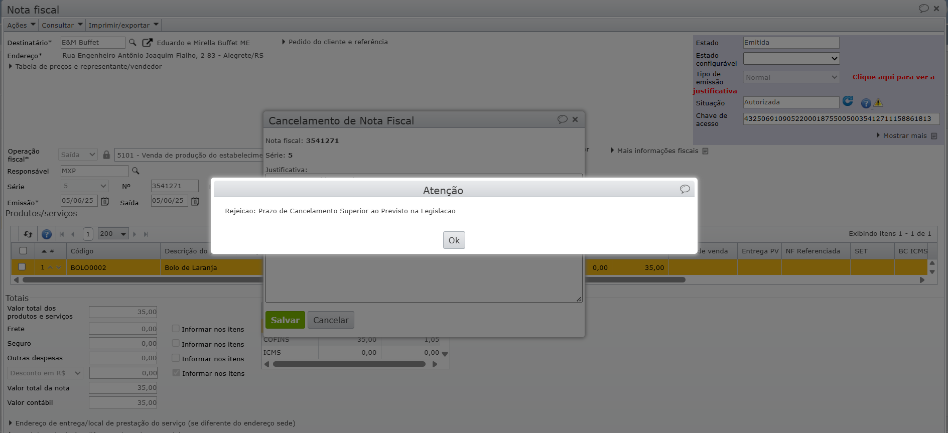 Se a nota fiscal eletrônica (NF-e) ultrapassou o prazo legal para cancelamento (geralmente 24 horas, salvo exceções previstas pela legislação estadual), o cancelamento não poderá mais ser feito pelo método convencional. Ao tentar realizar seja retornada a seguinte rejeição: