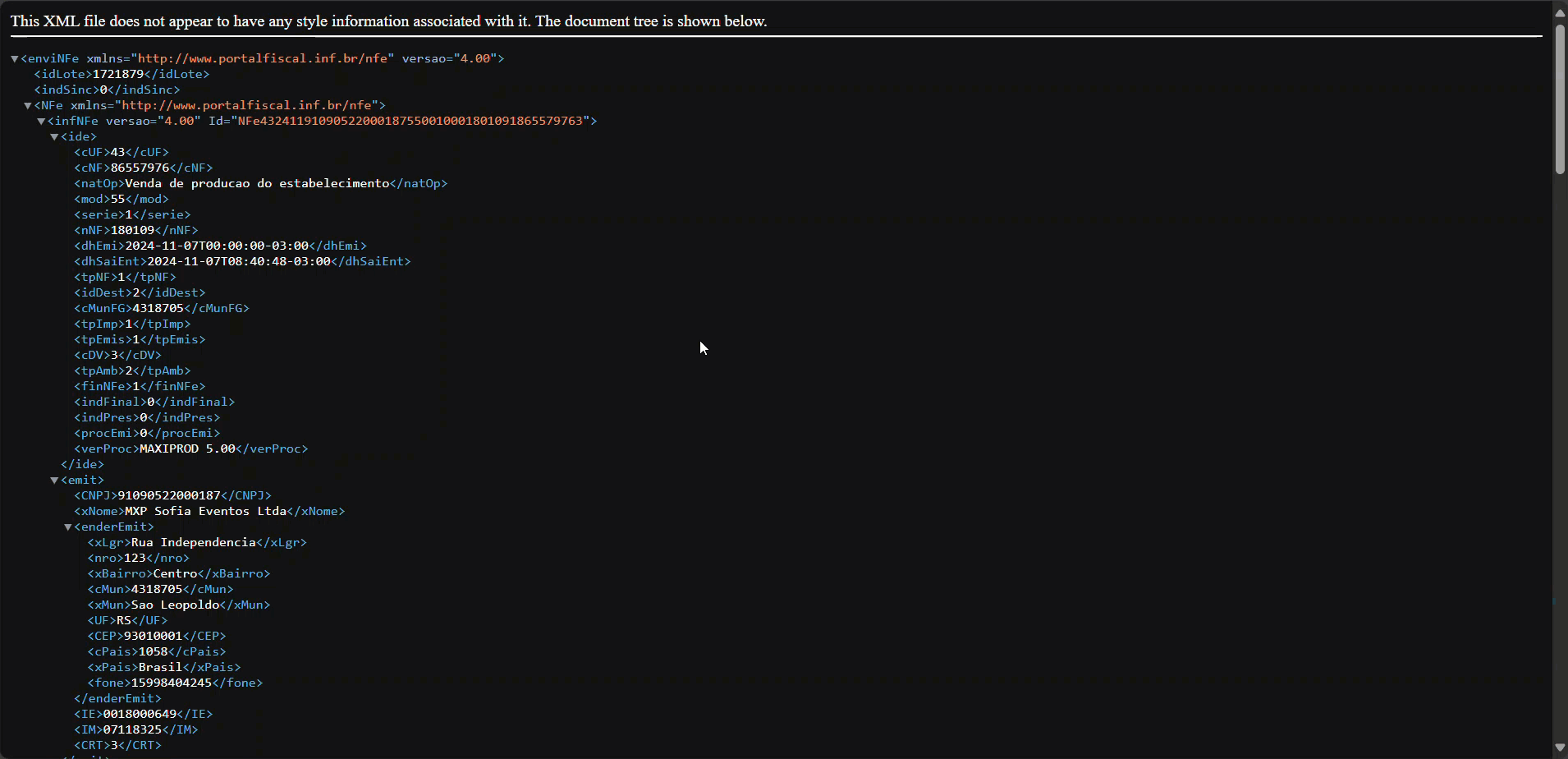 4) Após identificar o XML baixado em seu dispositivo, abra-o no navegador de sua preferência.