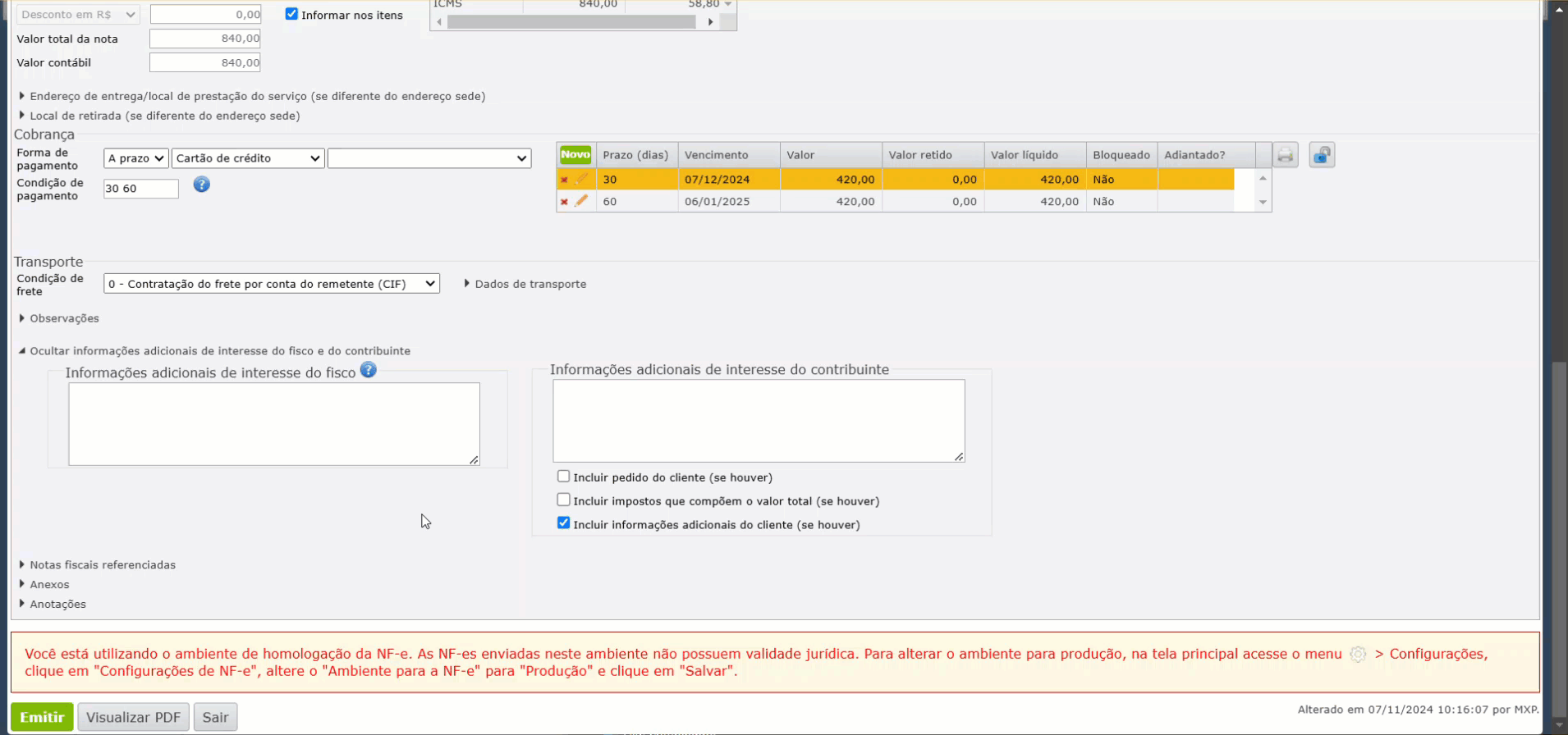 5) Ao finalizar as configurações, emita e envie a nota novamente, para confirmar o retorno da Sefaz.