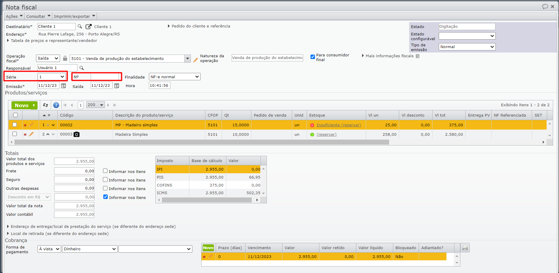 4) Agora, selecione a série fiscal, deixando o campo “” em branco.