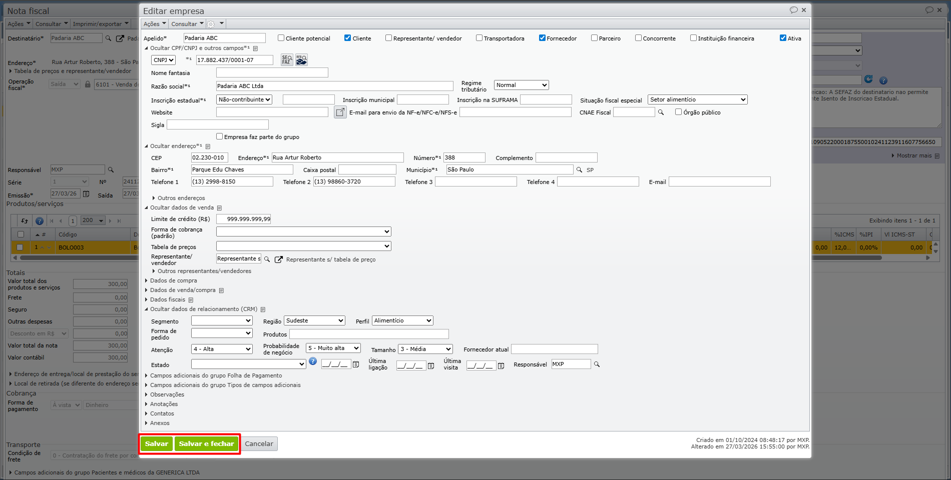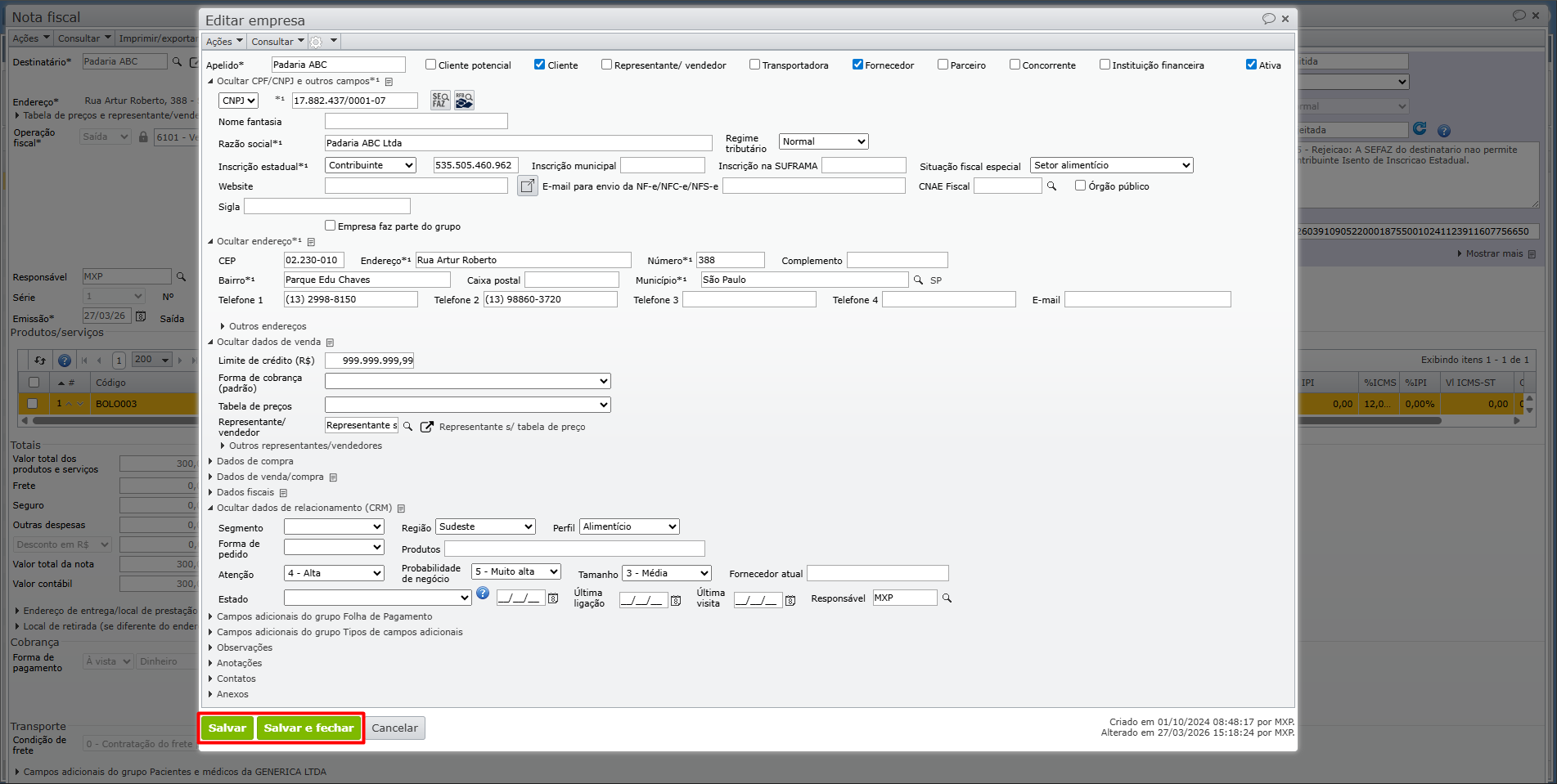Observação: caso a operação fiscal usada seja interestadual, pode ser necessário informar a partilha de ICMS. Para saber mais sobre ela e como a informar na nota fiscal, clique aqui. Para saber mais sobre operações ficais, clique aqui.