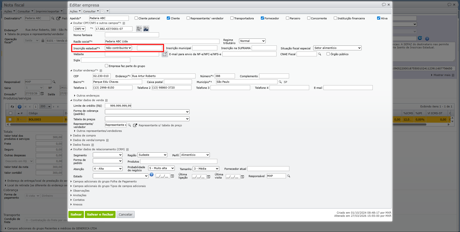 - Cadastrar o cliente como Contribuinte e informar uma IE;
