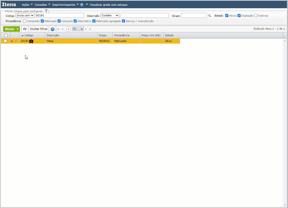 • Melhorias realizadas na visualização de itens com estado da ligação “Inativo” ou “Digitação” na tela de Estrutura de produto. Para saber mais sobre Estrutura de produto, clique aqui.