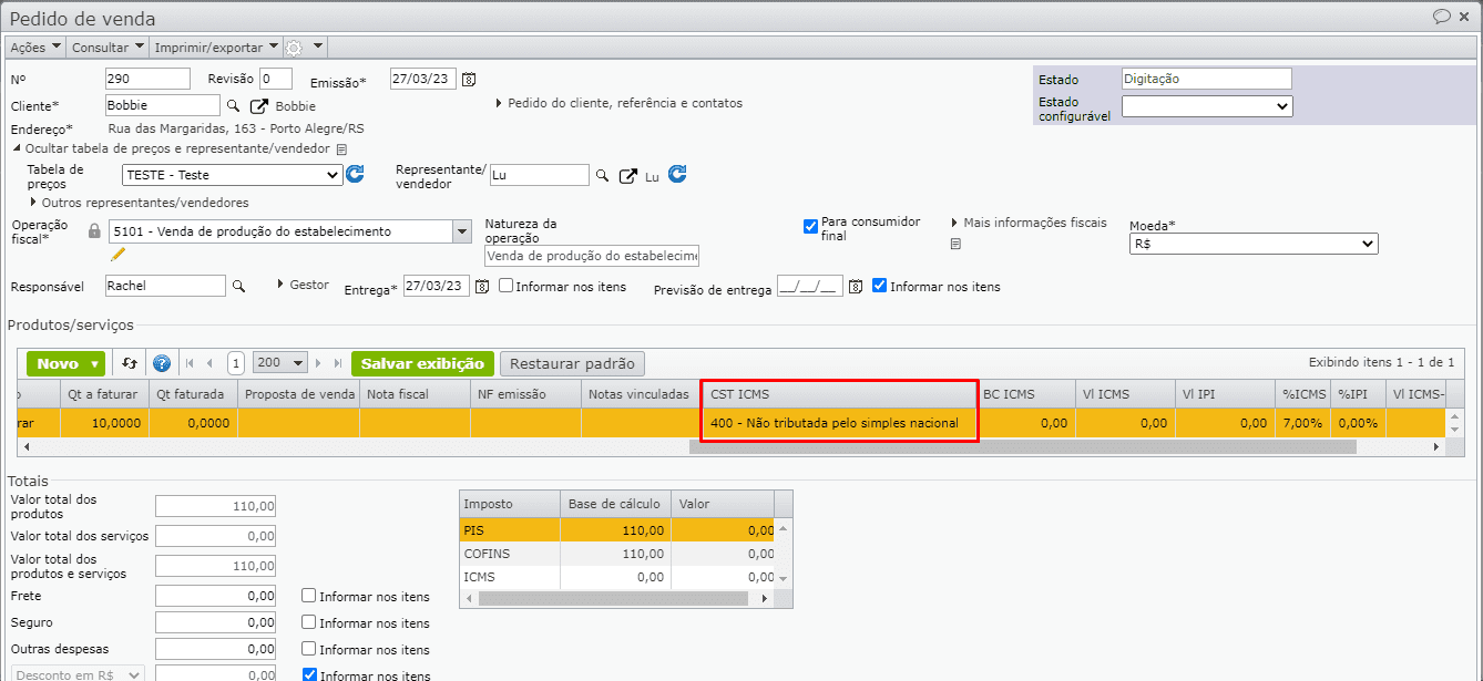 • Criadas novas colunas de CST ICMS, nas grades de itens de pedidos e notas fiscais, facilitando a consulta dessa informação. Para saber mais sobre como personalizar a visualização das telas, clique aqui.