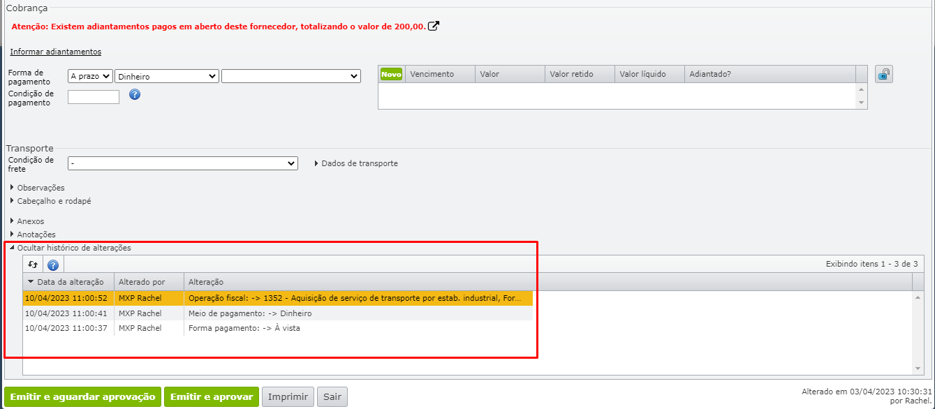 • Desenvolvida possiblidade de visualizar o histórico de alterações realizadas em títulos, nas telas de Contas a Receber, Contas a pagar, Retenções de contas a receber e Retenções de contas a pagar.