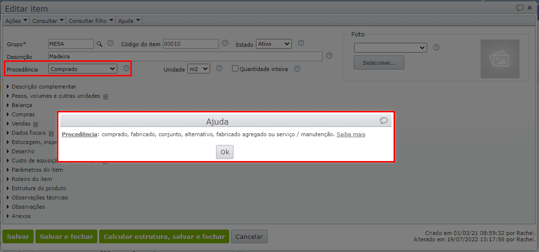 • Desenvolvida melhorias, nas explicações de campos do cadastro do item, facilitando o entendimento e funcionalidade dos mesmo.
