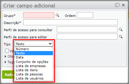 • Disponibilizadas novas opções de “Tipos” de campos adicionais dos pedidos de venda. Para saber mais sobre campos adicionais dos pedidos de venda, clique aqui.