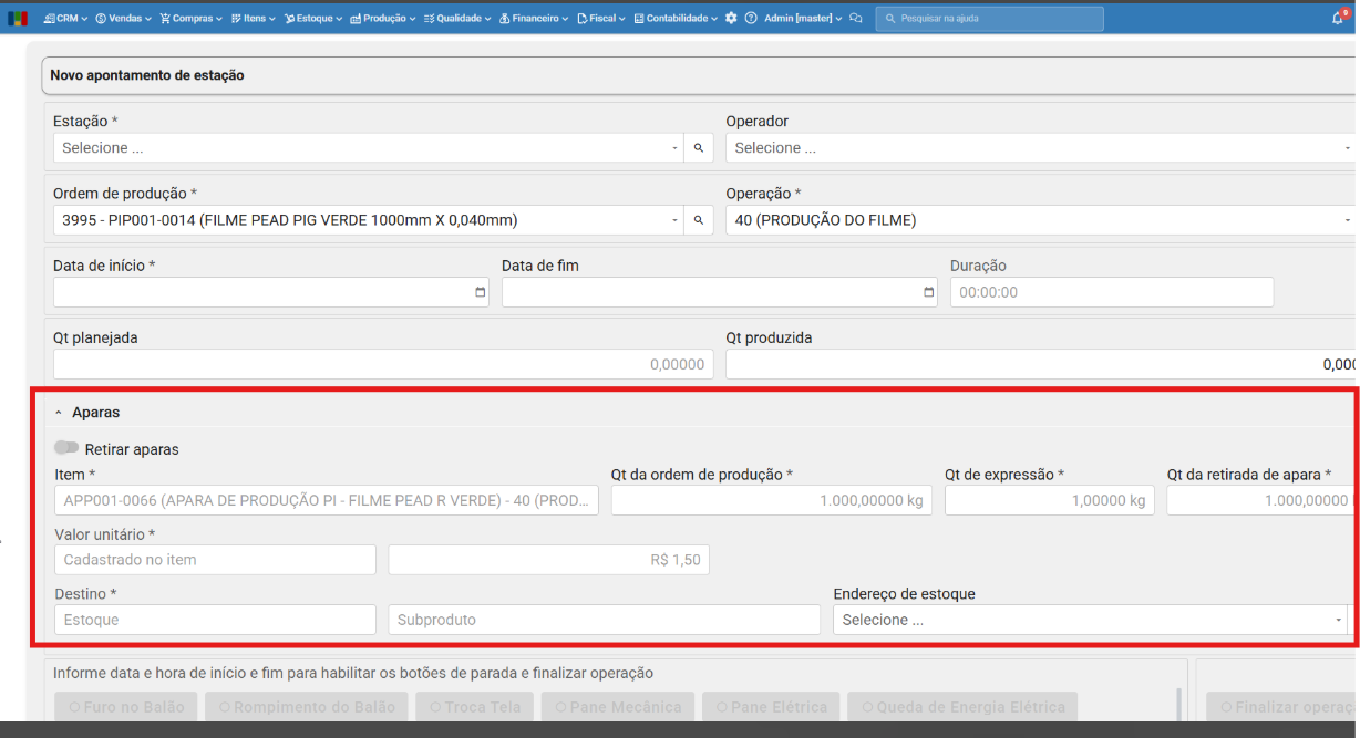 - Implementada funcionalidade de retirada de aparas diretamente no terminal de apontamentos ao parar ou finalizar operações. Para saber mais sobre aparas, clique aqui.