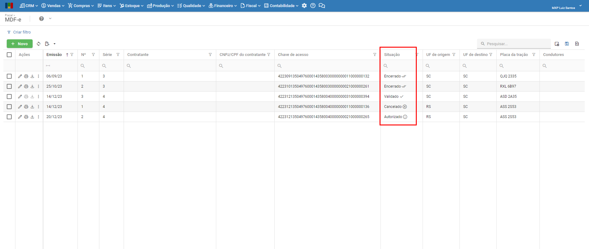 • Desenvolvida melhoria na visualização da situação da MDF-e. Incluídos ícones e caixa de texto explicativa ao parar o mouse sobre o ícone, para facilitar a identificação de cada situação.