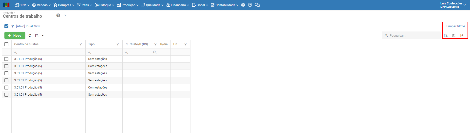 • Criado em todas as telas do Maxiprod, a função de “Limpar filtros”, “Salvar alterações de exibição na tela” e “Restaurar tela para as definições padrões” para uma melhor experiência de uso do sistema.