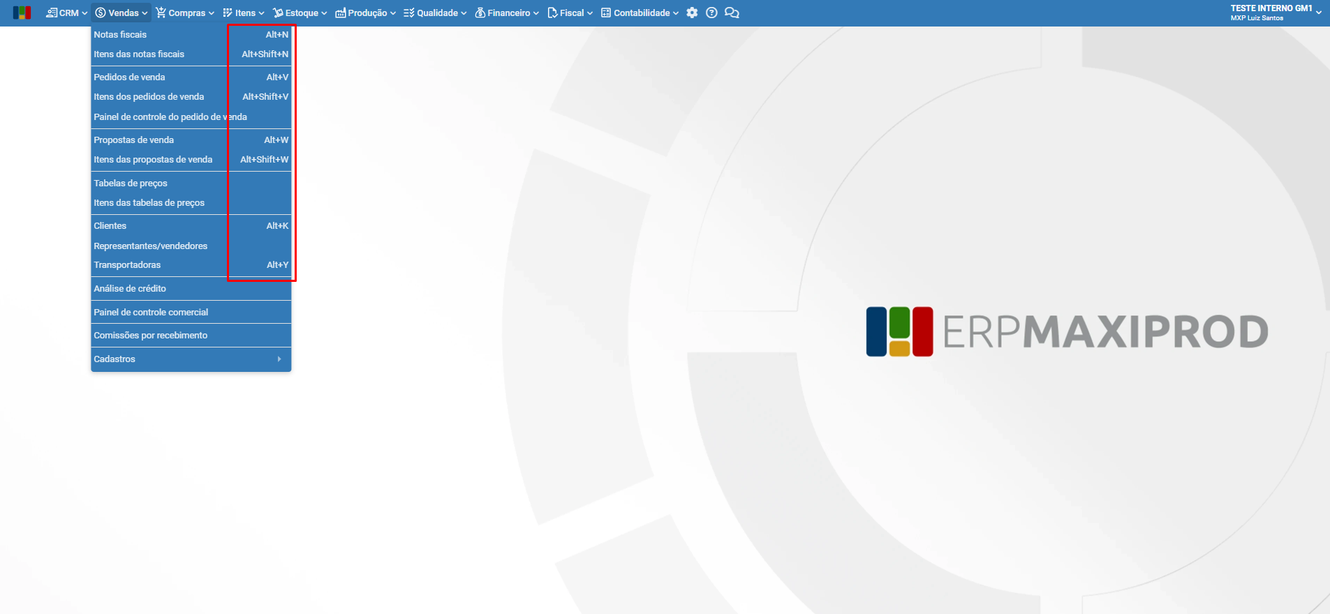• Implementado no Maxiprod, teclas de atalho para acesso as principais ferramentas.