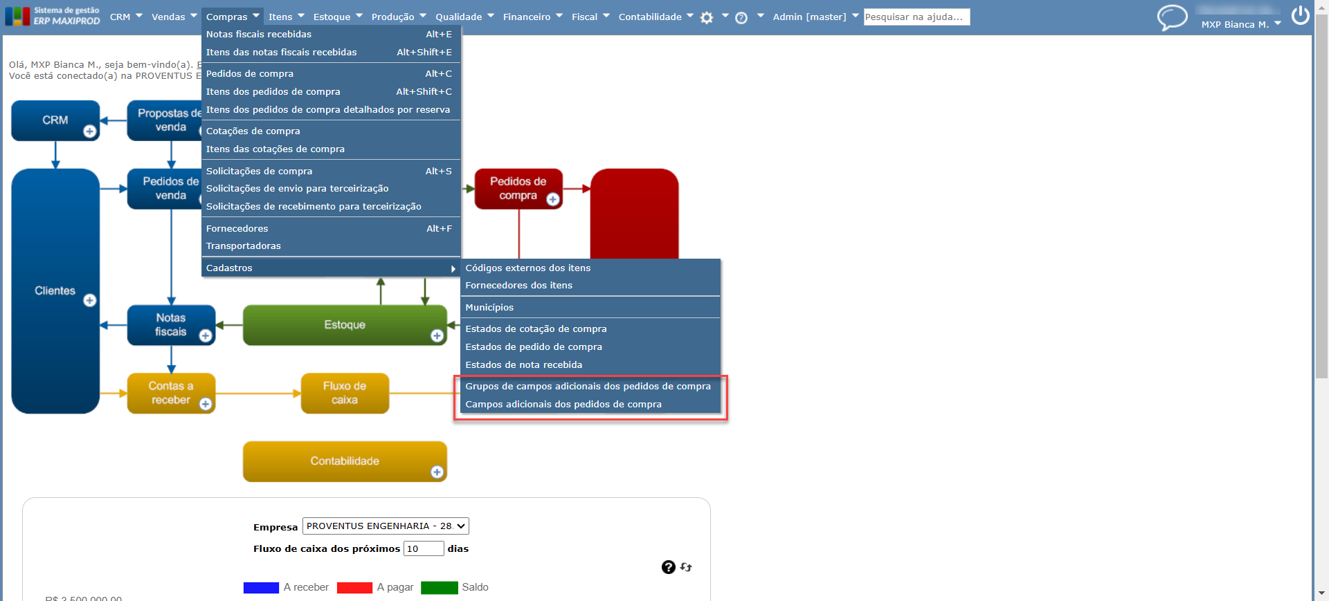 - Desenvolvida a possibilidade de criar campos adicionais e grupos de campos adicionais dos pedidos de compra, permitindo assim, a personalização dos campos dispostos no pedido de compras. Para saber mais sobre pedidos de compra, clique aqui.