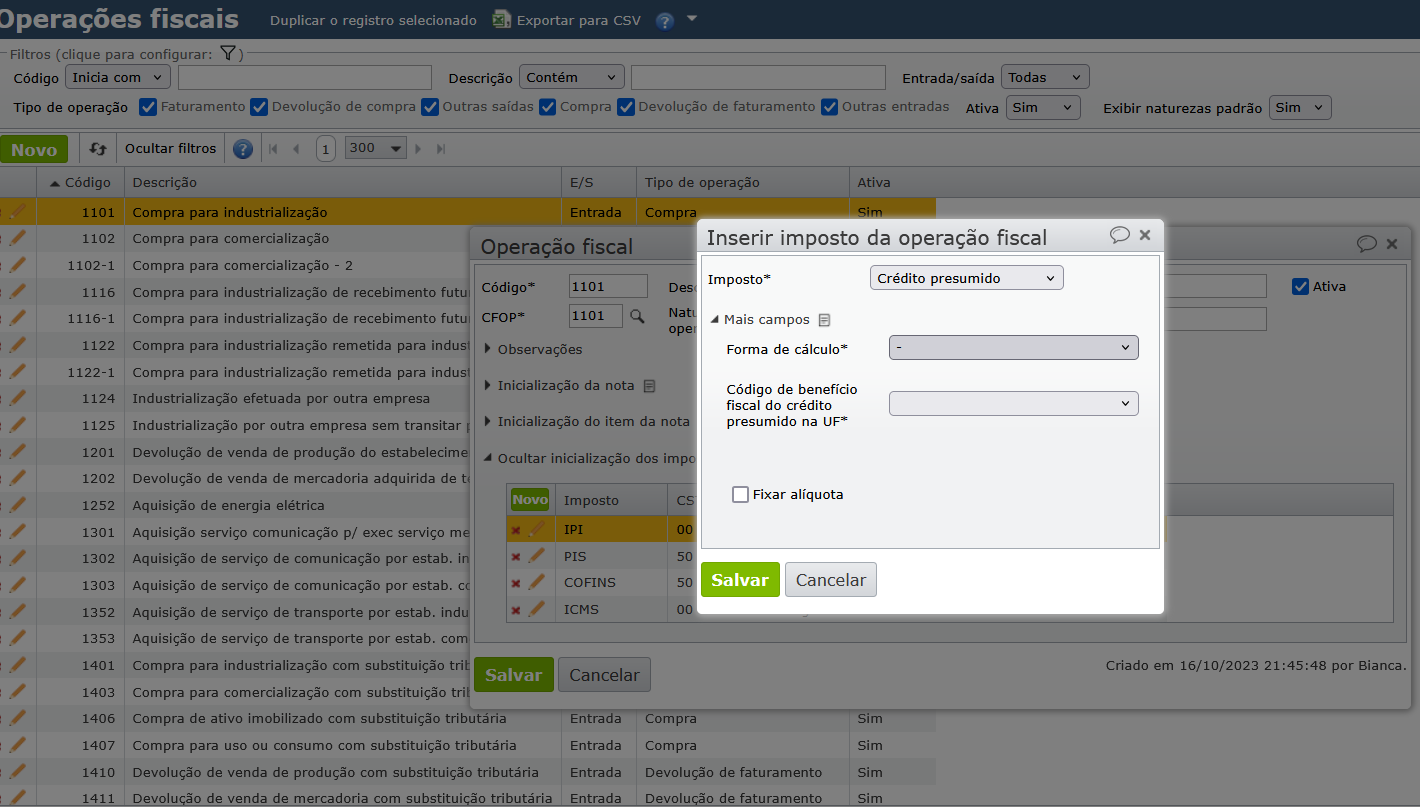 - Adequação do Maxiprod aos novos campos da NT 2019.001 (09/01/2024) com a criação de um novo imposto para envio dos campos de benefício fiscal de crédito presumido. Para saber mais sobre a inserção de impostos em operações fiscais, clique aqui.