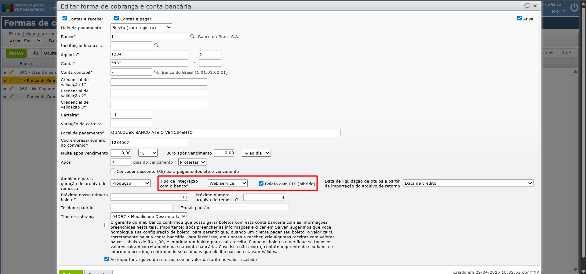 - Geração de boletos híbridos (com código de barras e PIX QR Code) para os bancos Sicoob e Banco do Brasil. Para a geração, é necessário utilizar a integração “Web service”. Para saber mais sobre a integração de boletos via Web service, clique aqui.