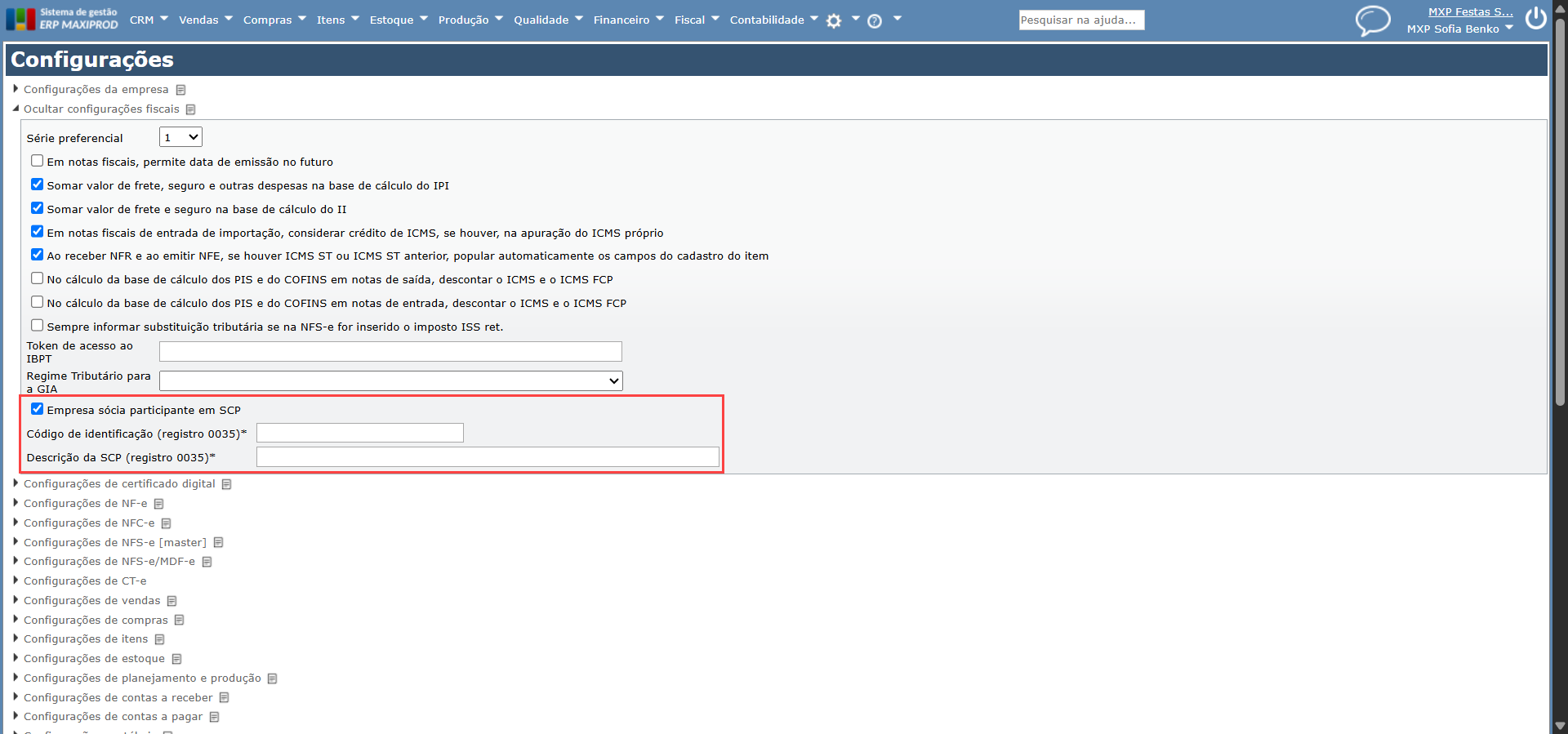 • Adequação a SCP (Sociedade em Conta de Participação), possibilitando o controle através ERP MAXIPROD e geração do SPED Contábil e SPED Contribuições para empresas deste modelo societário. Para saber mais sobre o SPED Contábil clique aqui e, para saber sobre o SPED Contribuições, clique aqui.