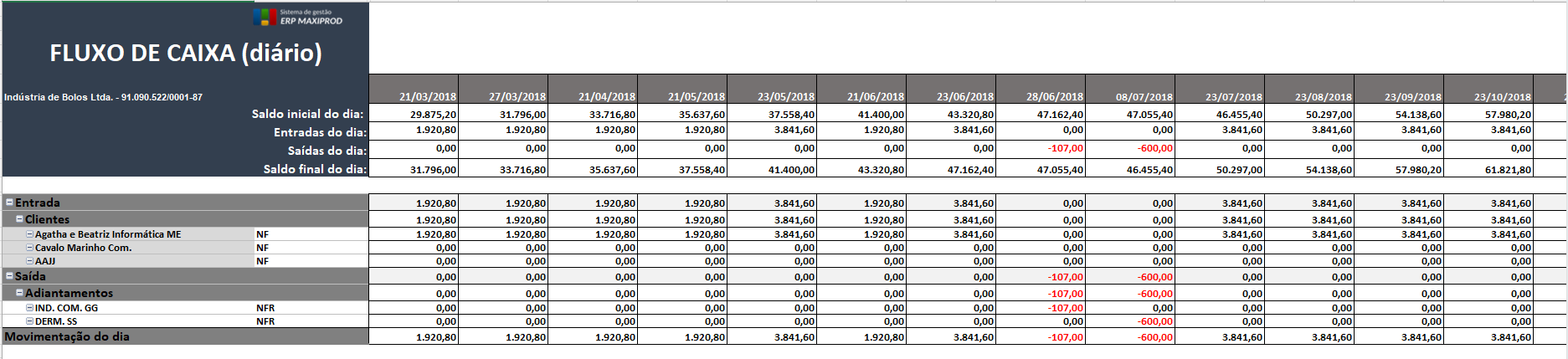 - Disponibilizado na tela de fluxo de caixa, novos relatórios nomeados “Fluxo de caixa (diário)” e “Fluxo de caixa (mensal)”, para a exibição das informações financeiras detalhadas por dia e por mês. Para saber mais sobre fluxo de caixa, clique aqui.