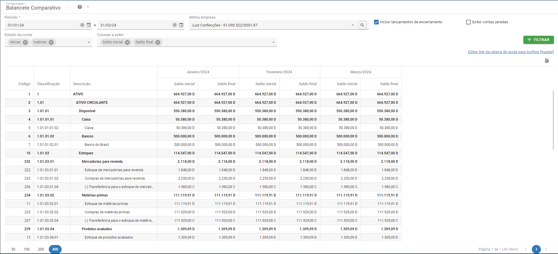 - Implementada nova tela de balancete comparativo, para a exibição do balancete em formato comparativo mensal. Para saber mais sobre balancete, clique aqui.