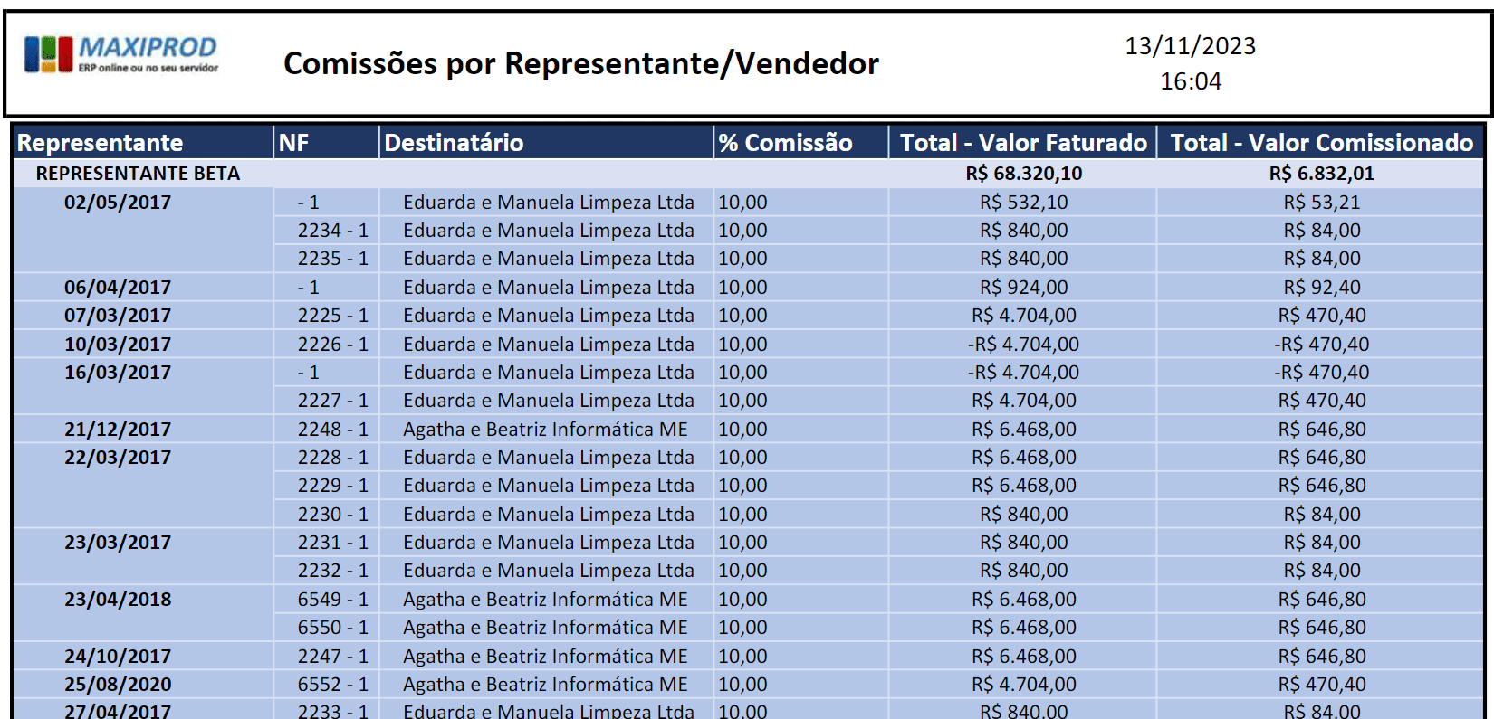 - Disponibilizado nas telas de Pedidos de venda e Notas fiscais, novo relatório nomeado “Comissões por representante – (com razão social)”, para ser utilizado como relatório de comissões por representante. Para saber mais sobre relatórios personalizados, clique aqui.